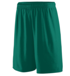 Augusta Sportswear Adult 9 Poly Wicking Knit Training Shorts. 100% polyester wicking knit, full cut. Pad print label. Covered elastic waistband with inside drawcord. Double-needle hemmed bottom. Youth inseam graded.